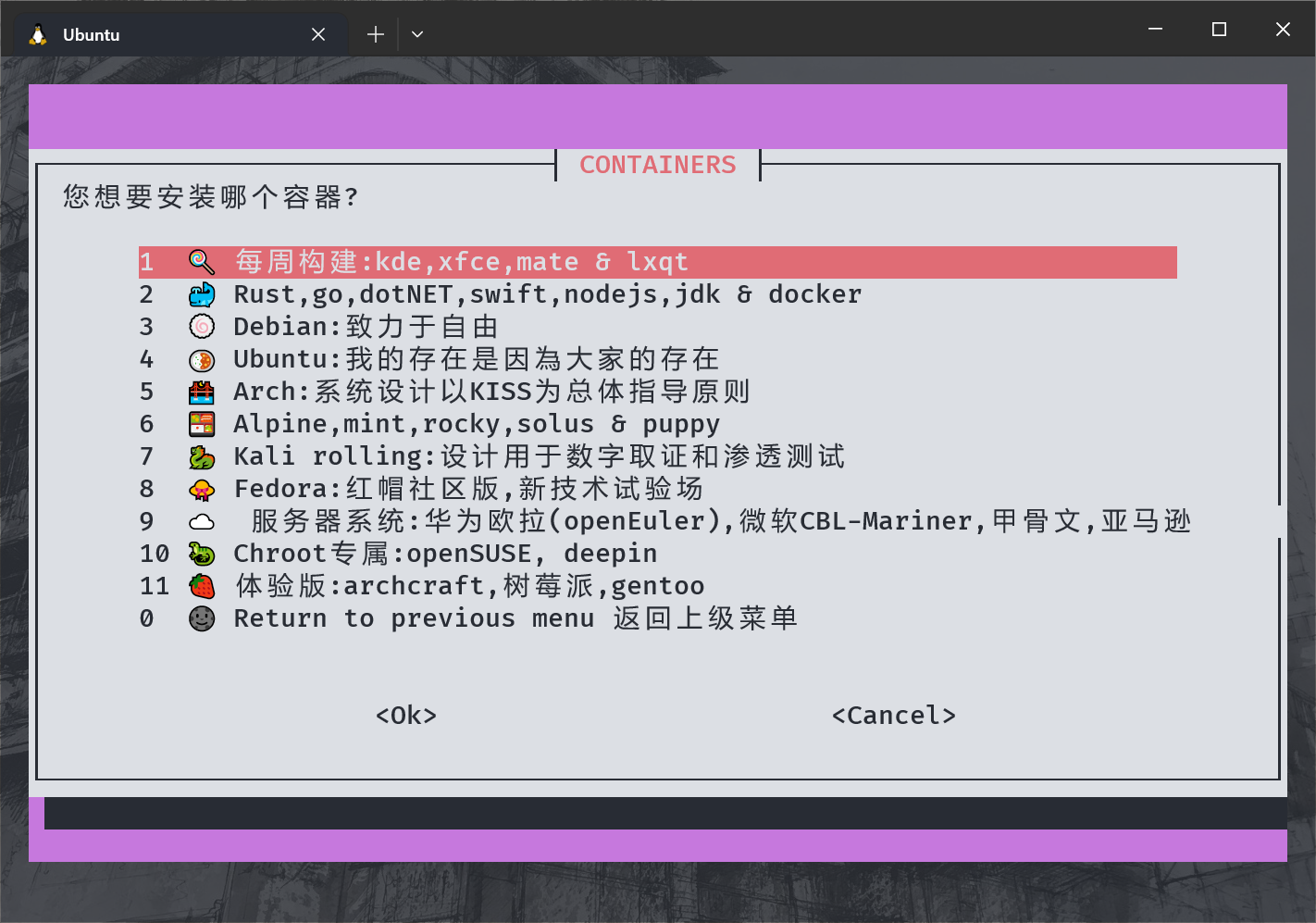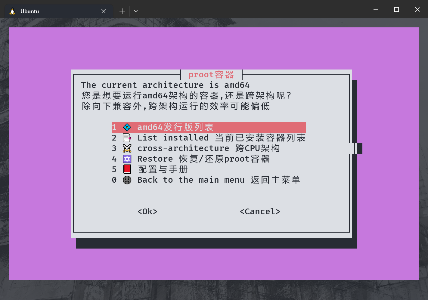 挂载完目录后,选择一个你喜欢的 arm 64 架构发行版,之后只需要按照提示完成操作就能完成容器的安装。