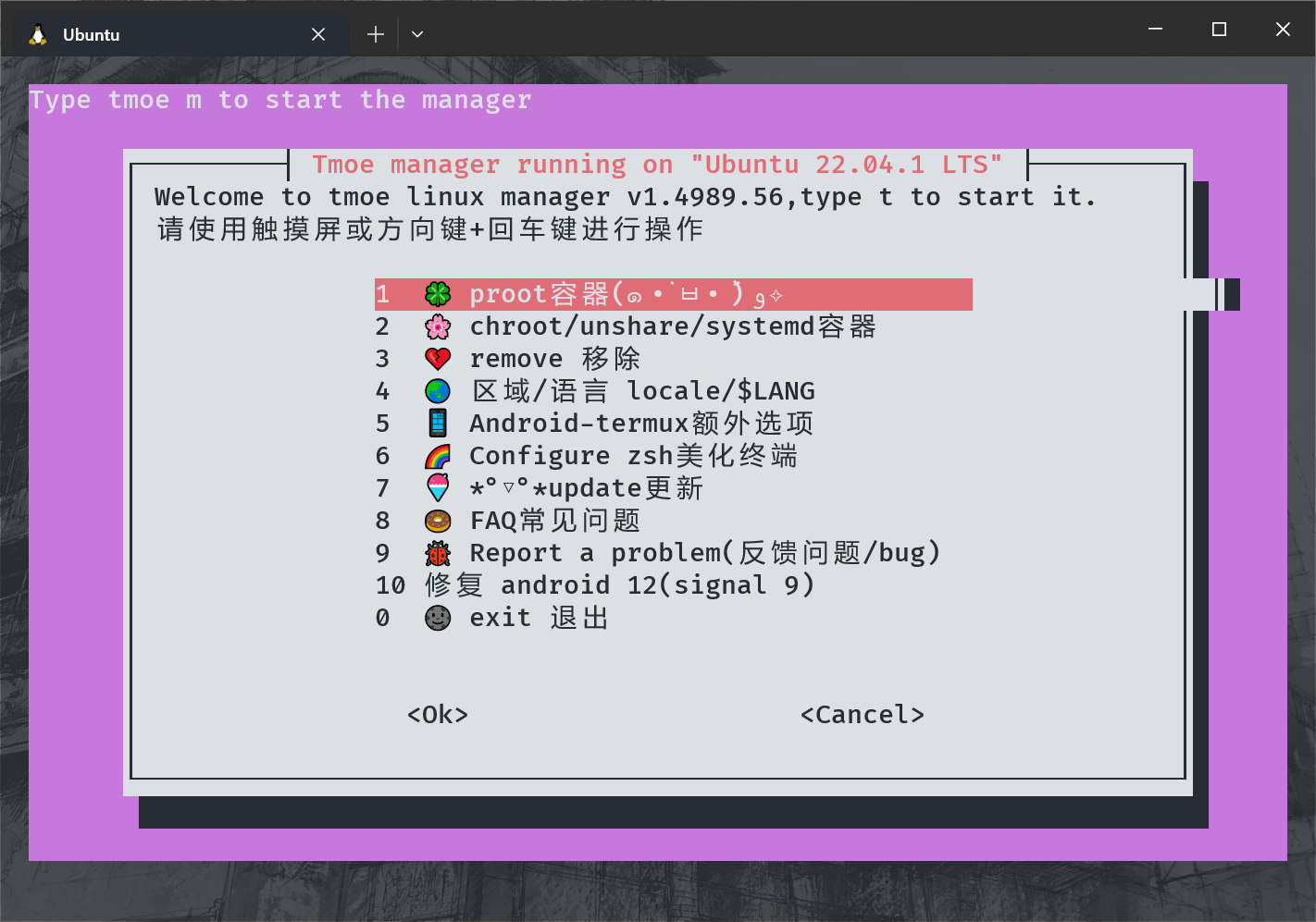 官方的 Termux 文档给出的 Linux 容器部署方案是使用 proot-distro 库,但这对网络条件要求较高。另一个更为简单的方案是使用上面提到的 Tmoe 脚本。